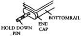To secure bottom rail, insert hold down pin into un slotted bracket first.