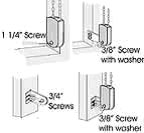 IMPORTANT NOTE: Screws provided are for installation into wooden frames only. For metal surfaces, use suitable sheet metal screws and pre-drill holes. For concrete, stone, brick, or tile use a carbide drill and appropriate anchors and screws. For wallboard or plaster, use hollow wall anchors and/or longer screws to each framing or stud.