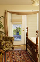 from the outside. The Classic Teardrop roman style shade or Hobbled roman shade